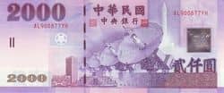 2000元台币,碟形天线,樱花,钩吻鲑及南湖大山,签发于二零零零年。